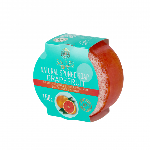 Natural soap with a sponge gently cleanses skin, leaving it soft and silky. The soap contains extracts of aloe, chokeberry, calendula, green tea leaves and mint which deeply moisturize skin and stop skin flaking. Sponge delicately exfoliates dead skin cells and removes impurities.