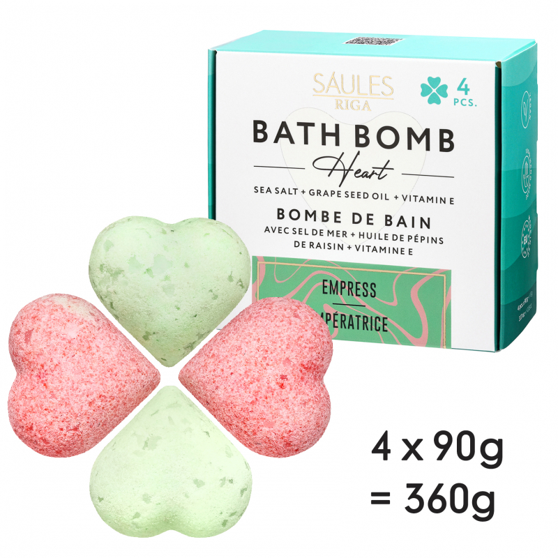 Vannas bumba Empress ar jūras sāli un vīnogu kauliņu eļļu baro un izlīdzina ādu. Burbuļojošās vannas bumbas ir lielisks veids kā atpūsties un atjaunot spēkus pēc nogurdinošas dienas.